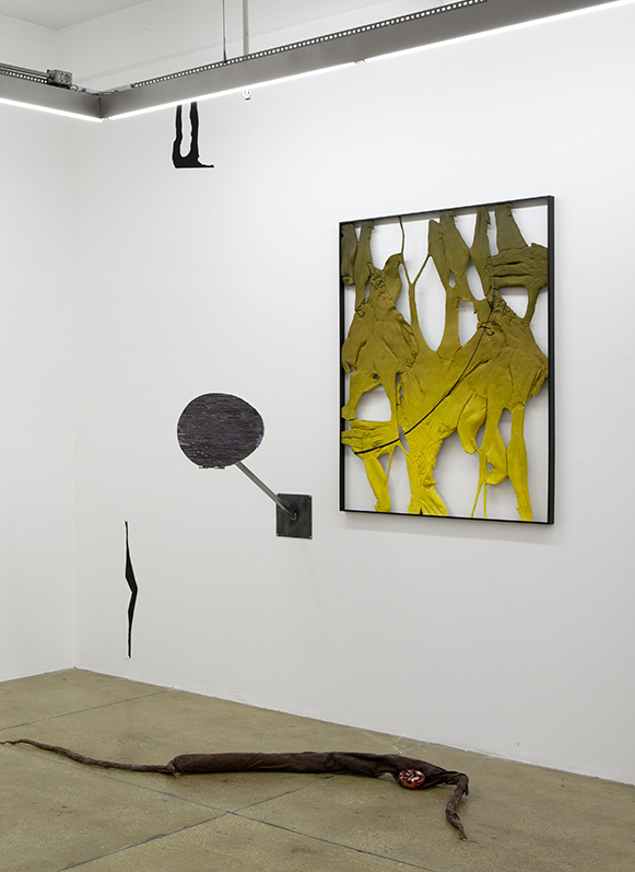 Oil paint, spray paint, urethane resin, epoxy, wood, powder-coated aluminum frame