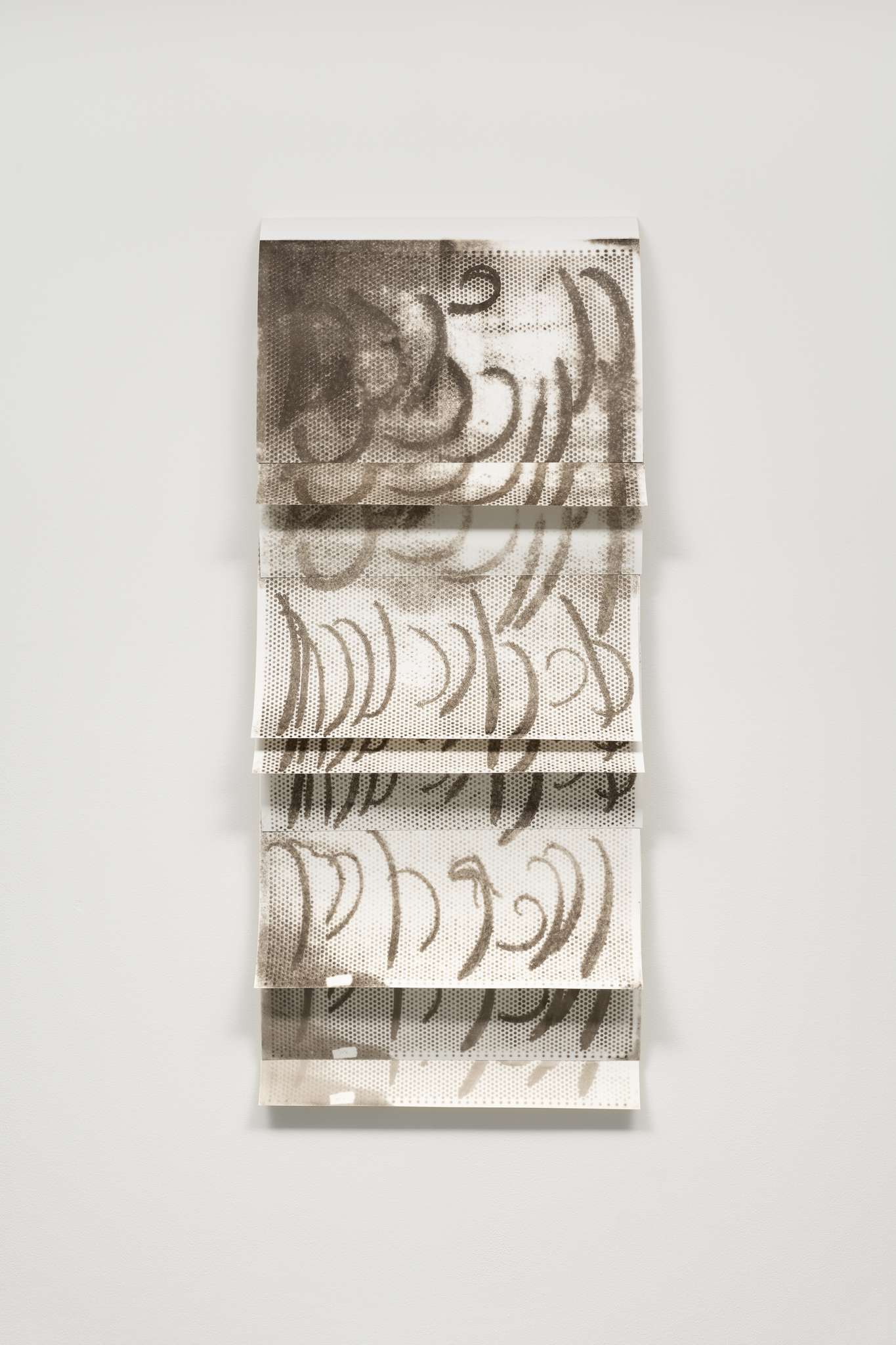 First successful melanin test prints on paper, created with a strain developed by Dr. Guillermo Gosset (UNAM, Mexico) and the help of Dr. Sam Myers during Kim’s artist residency at the Broad Institute of MIT and Harvard, 2019.